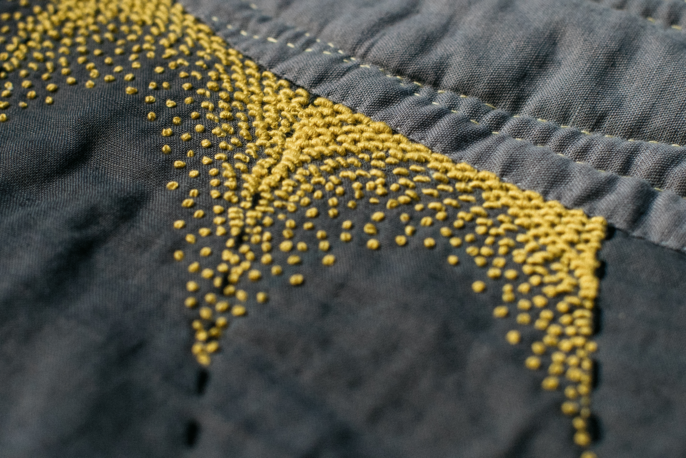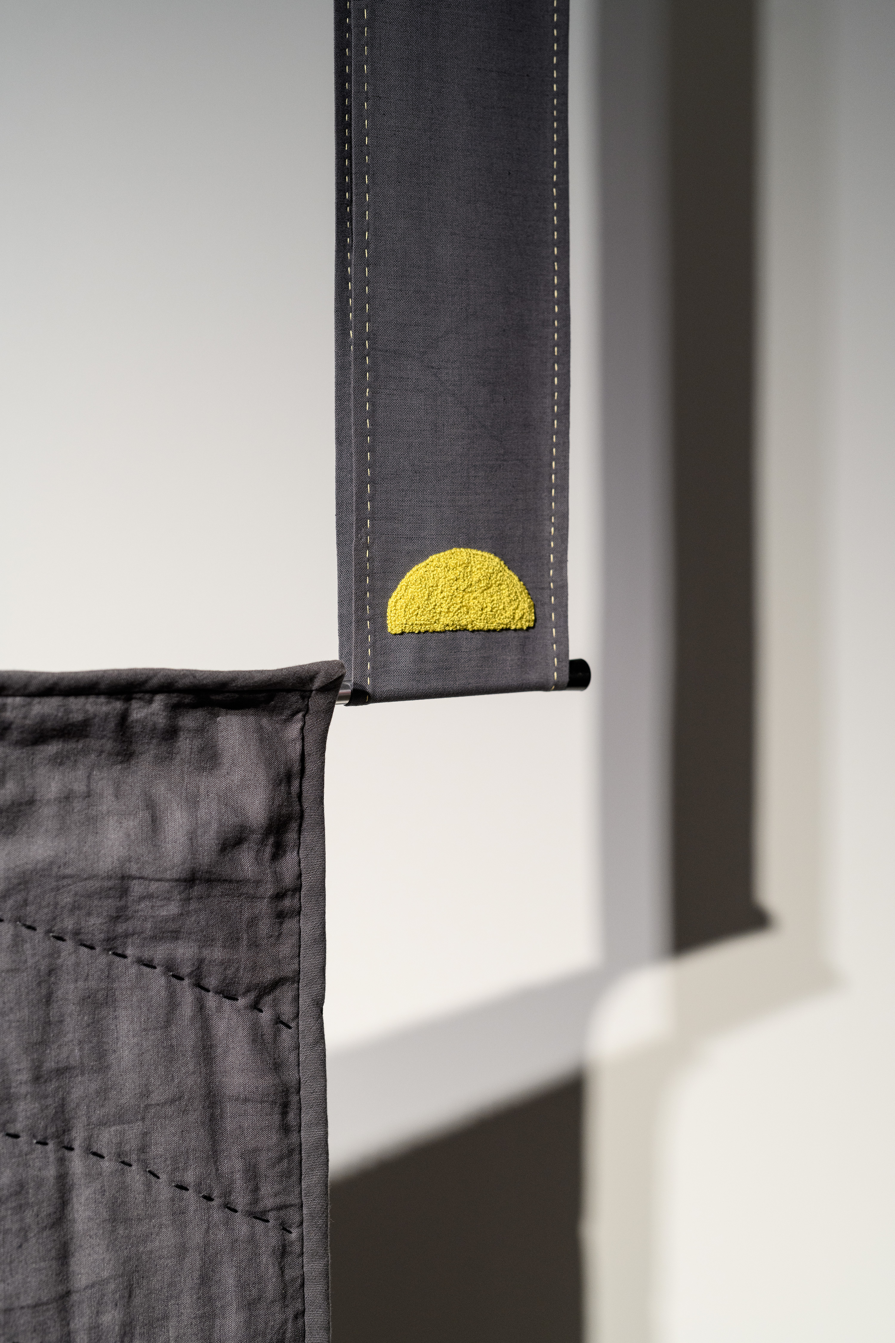 Hole (Monolith) (2025) (detail). Acid-dyed and quilted linen-cotton. 1090mm x 1420mm. Exhibition view: I can’t shake the stranger out of you, Centre of Contemporary Art Toi Moroki, Ōtautahi (2025). Photo: Owen Spargo.
