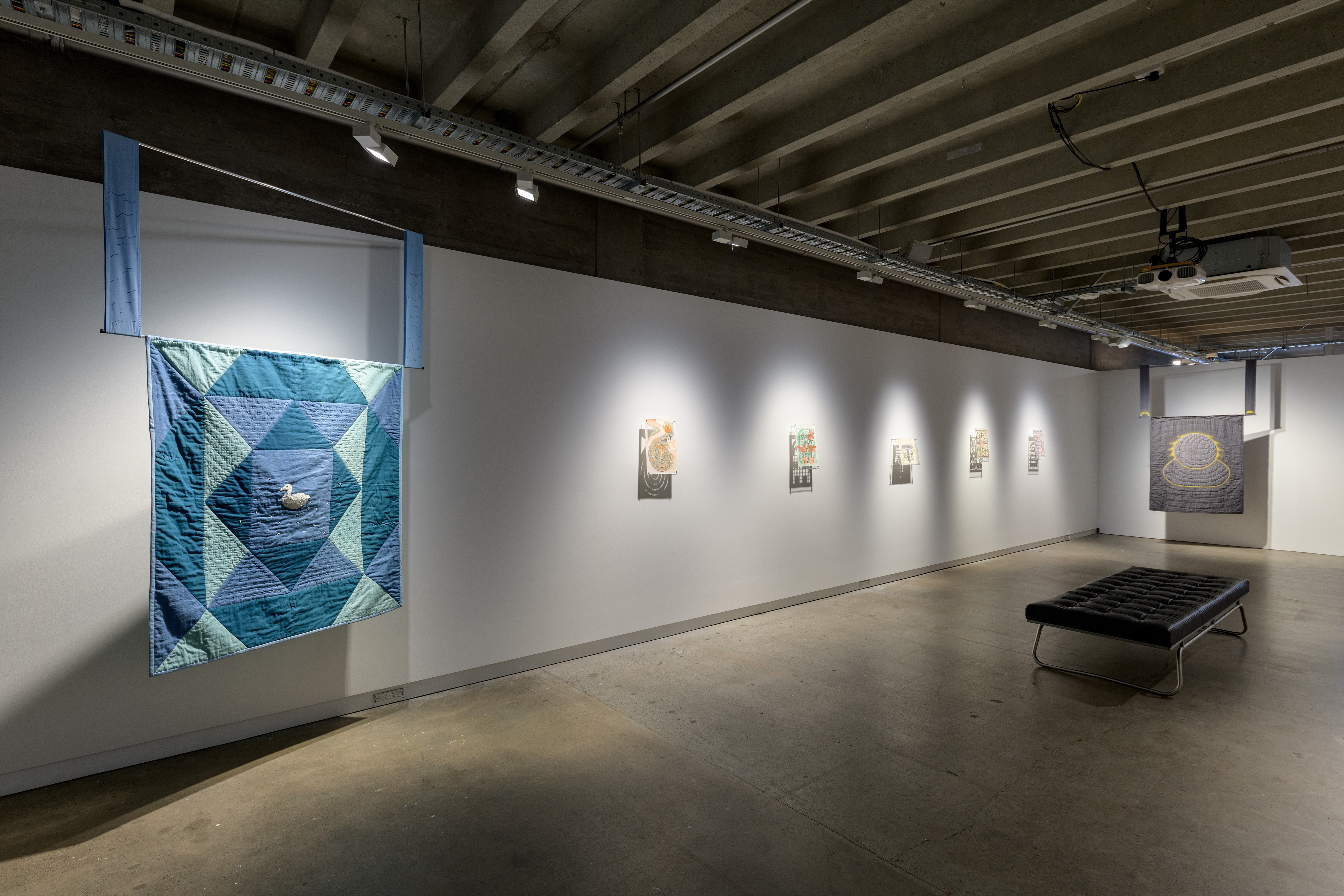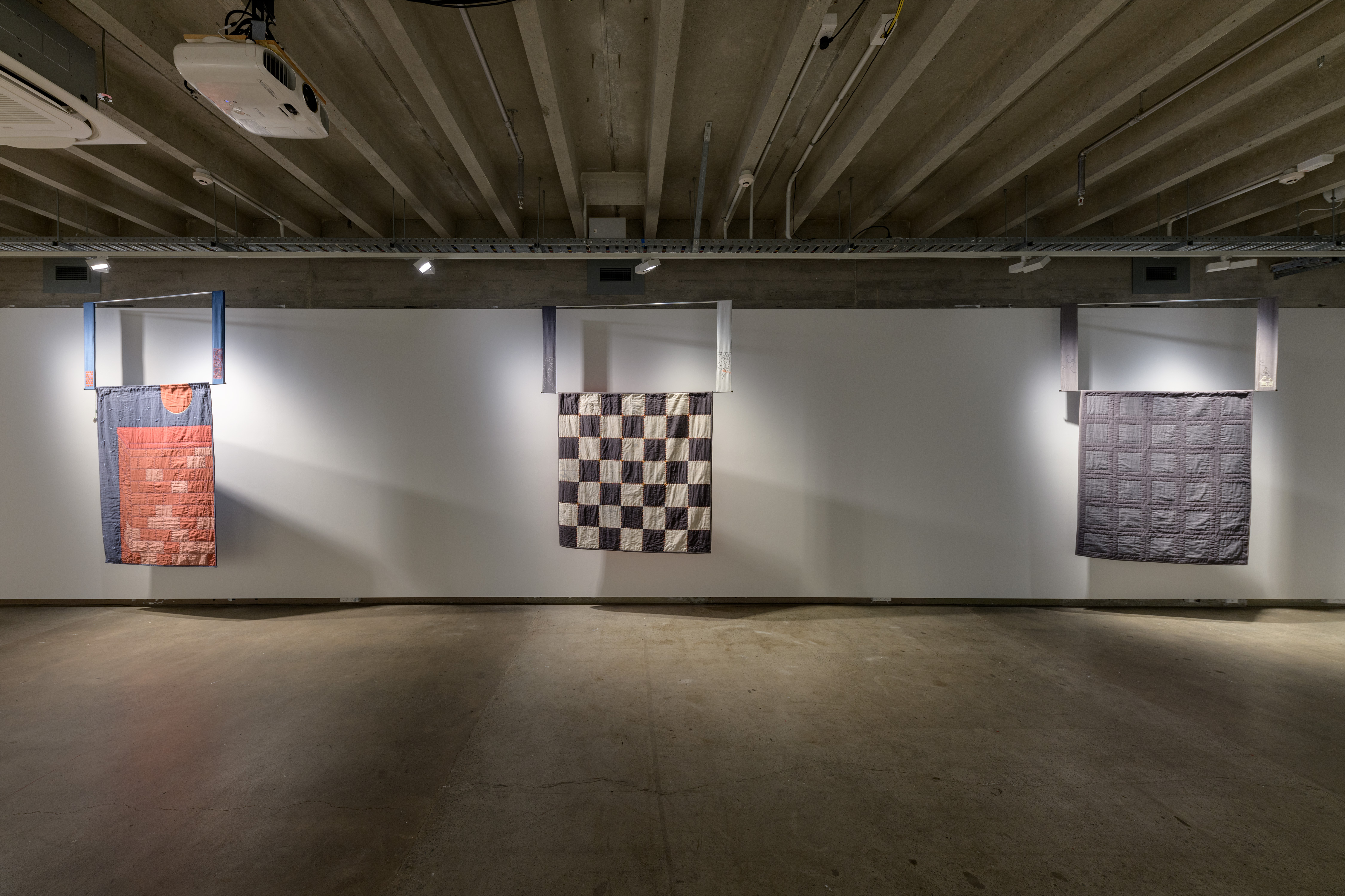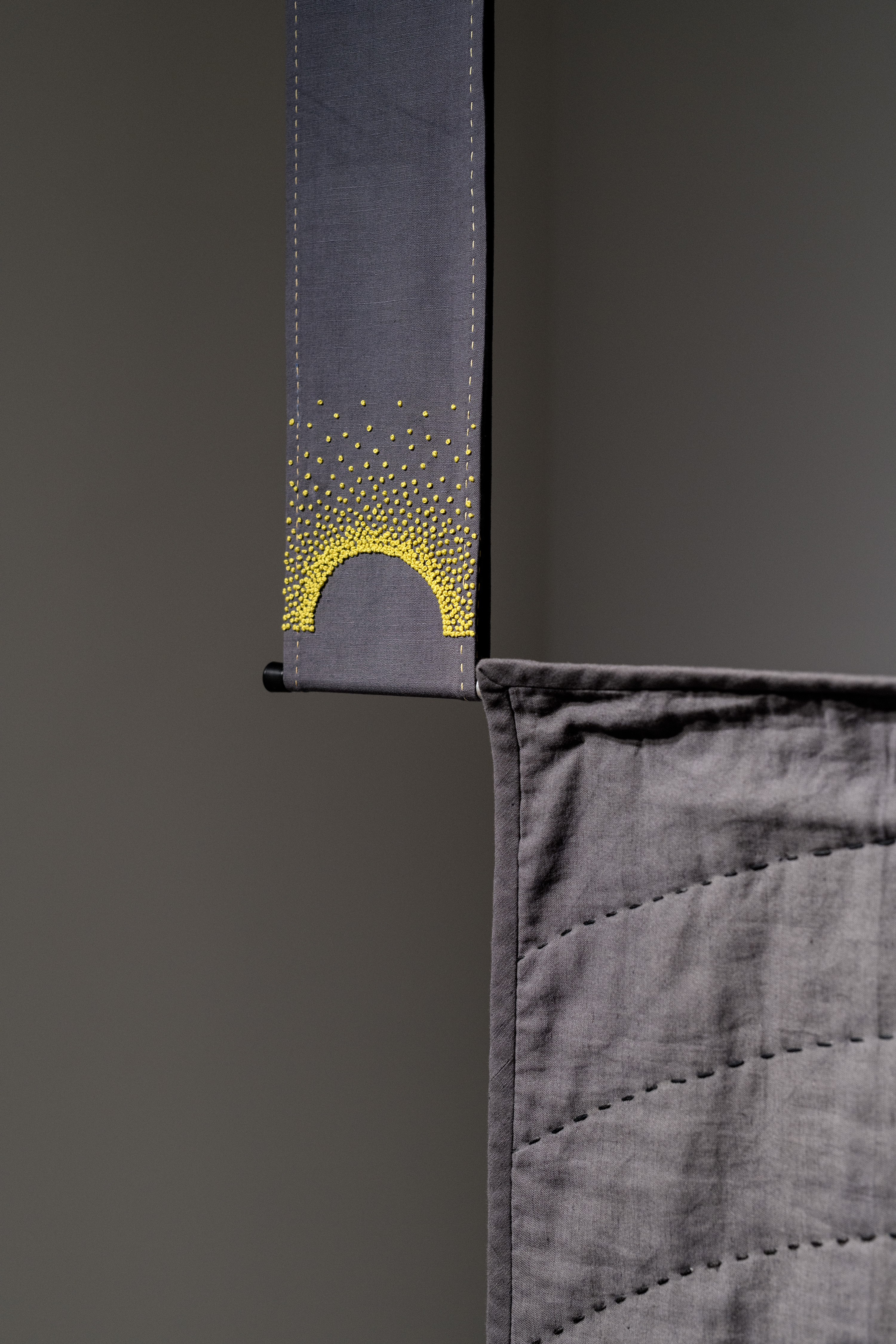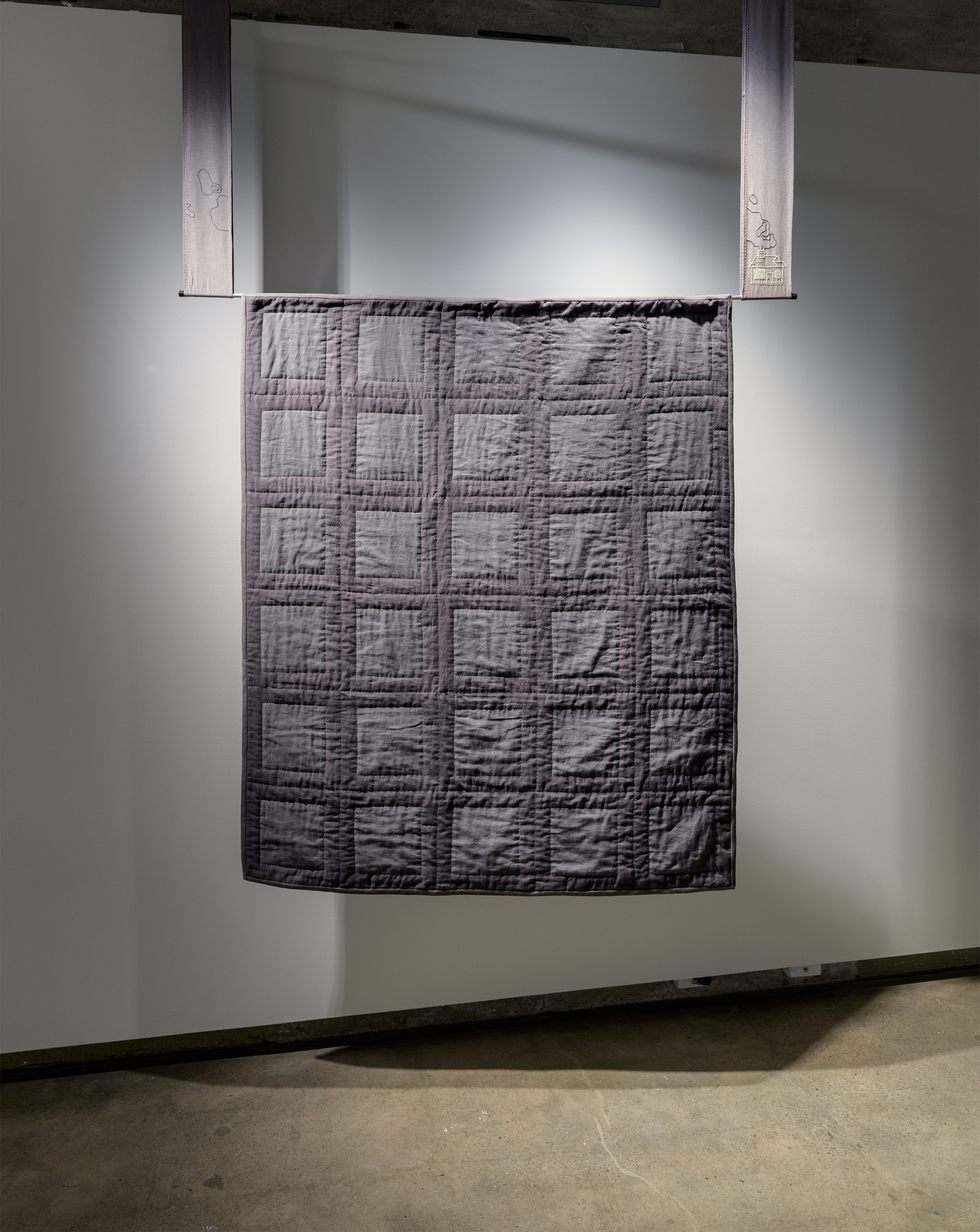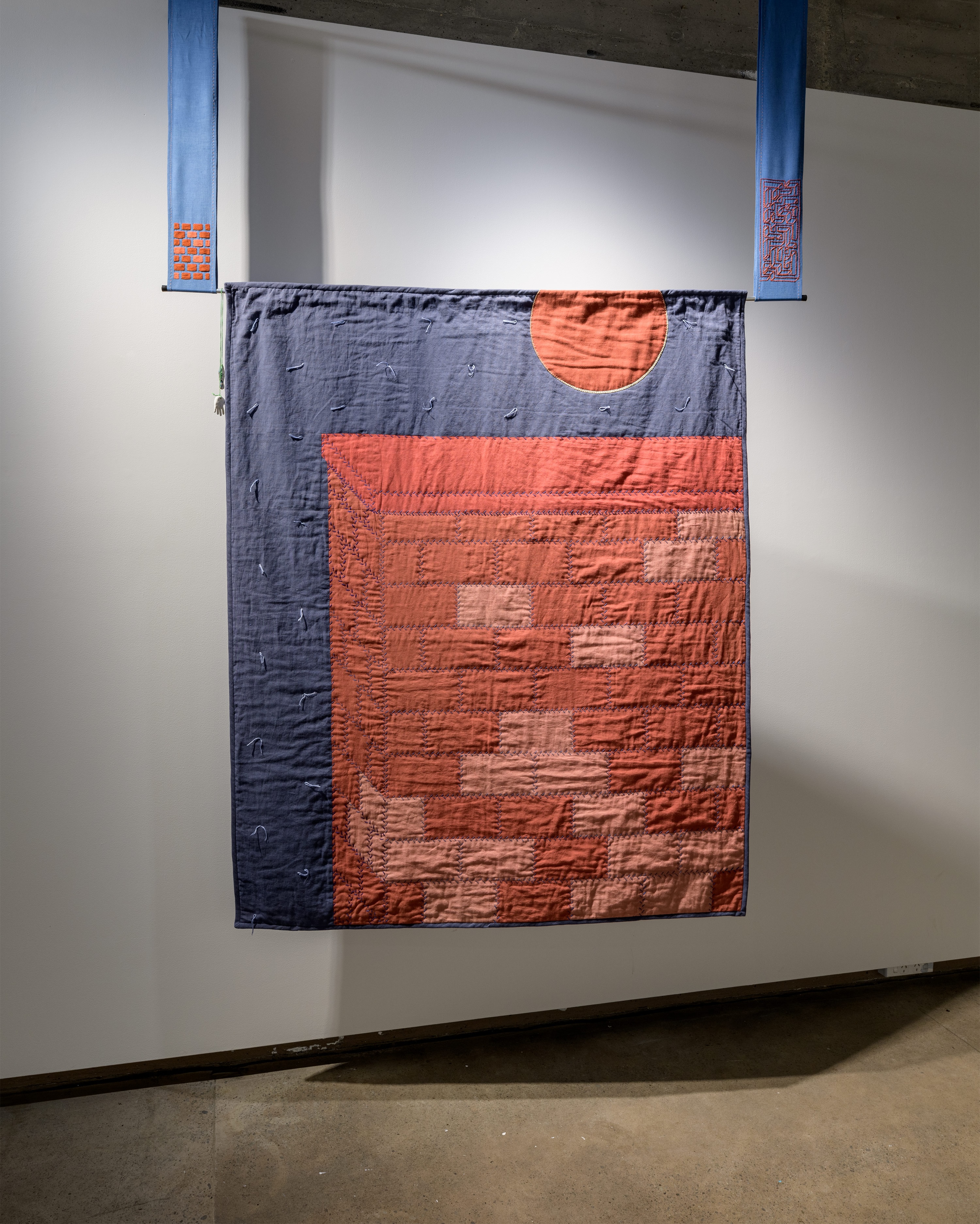 House (Smoke) (2025). Acid-dyed and quilted linen-cotton. 1207mm x 1460mm. Exhibition view: I can’t shake the stranger out of you, Centre of Contemporary Art Toi Moroki, Ōtautahi (2025). Photo: Owen Spargo.