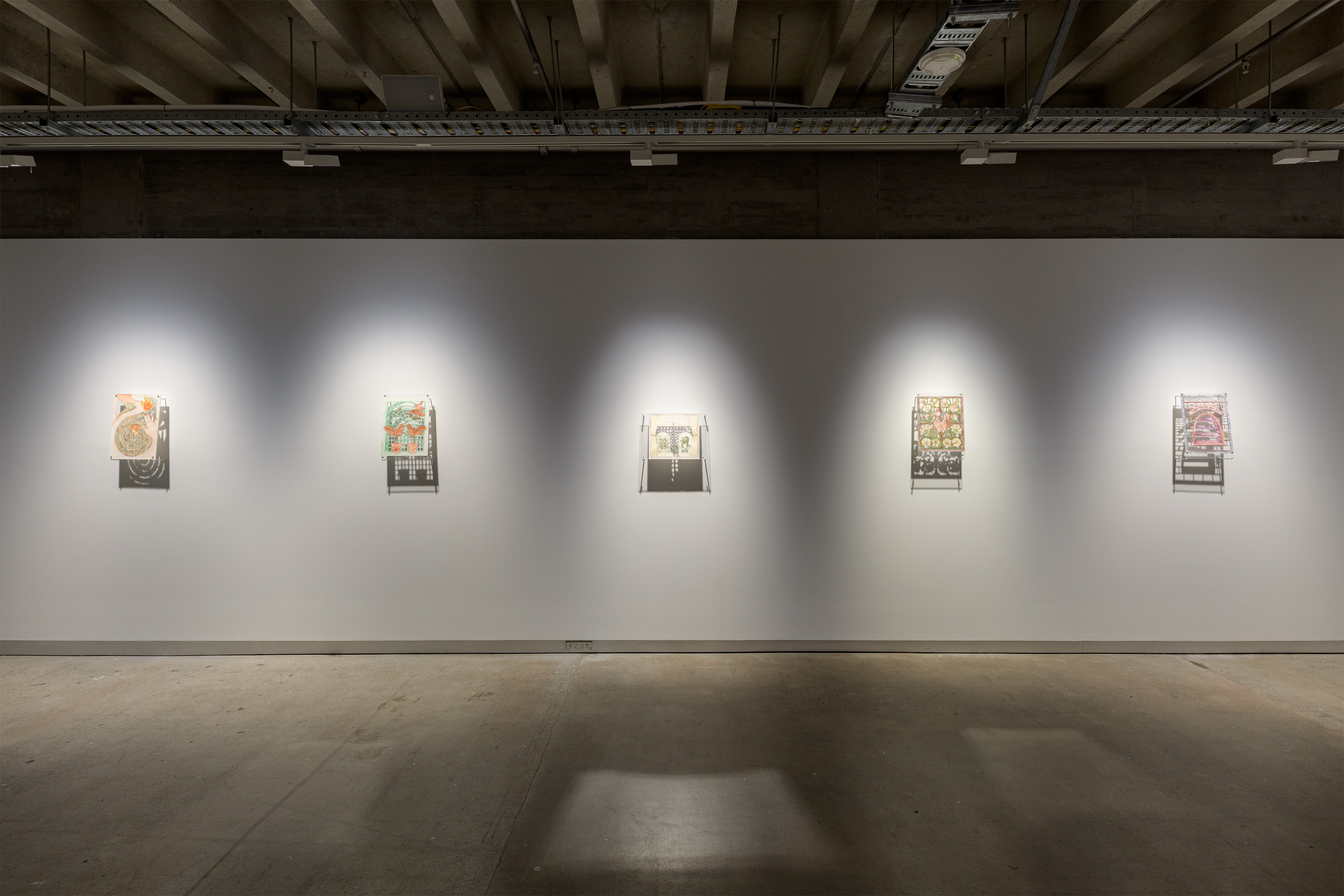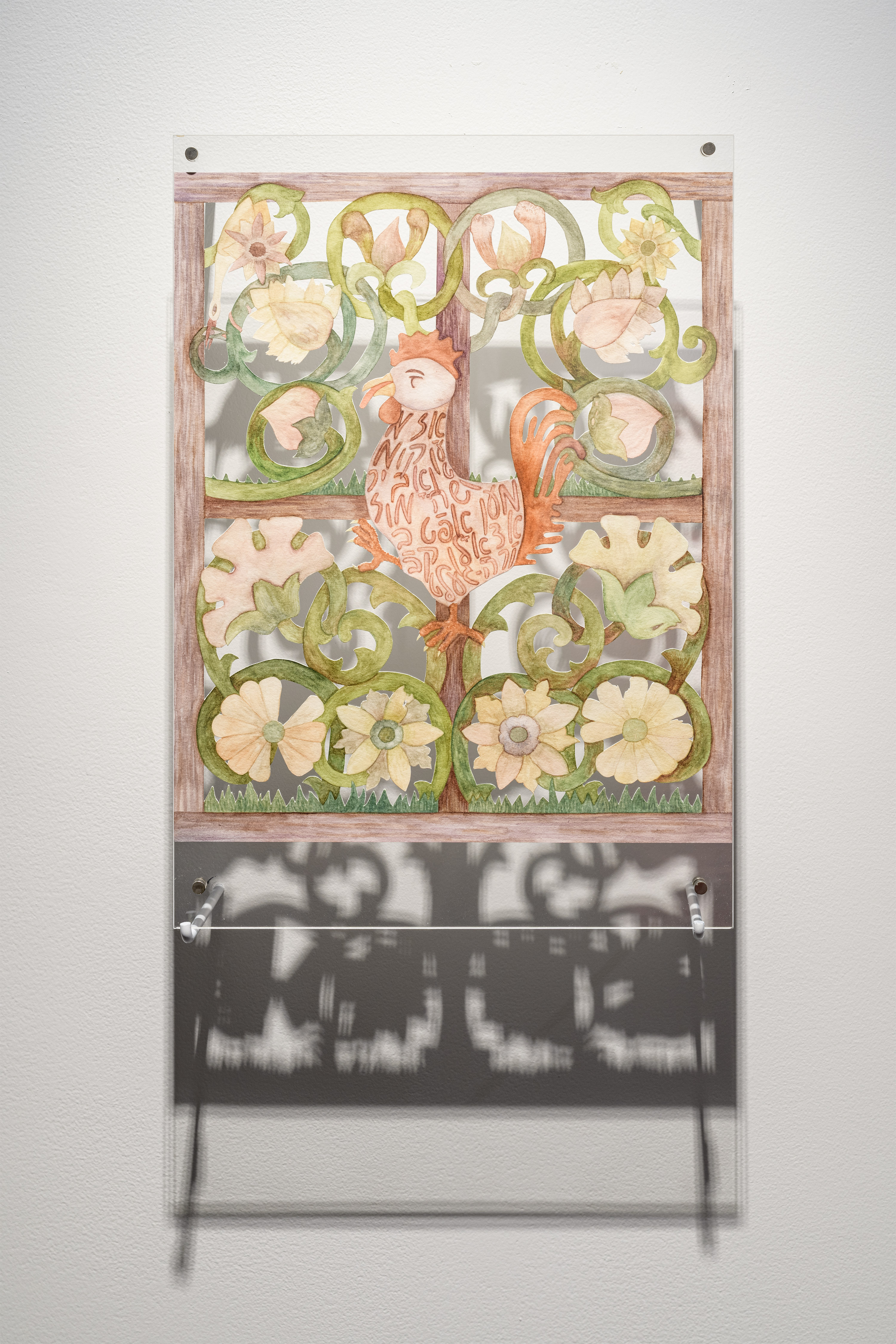 Eternal (Gag) (2025). Watercolour on paper. 296mm x 416mm. Exhibition view: I can’t shake the stranger out of you, Centre of Contemporary Art Toi Moroki, Ōtautahi (2025). Photo: Owen Spargo.